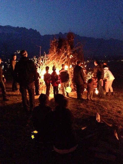 Den beiden Obmännern Bruno und Adrian ist es gelungen einen schönen stimmungsvollen Flaggalaabend zu organisieren. Mit Flaggala und Lampions nahmen etwa 30 Kinder am Miniumzug vom Egeten Spielplatz zum Funkenplatz teil.