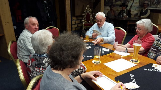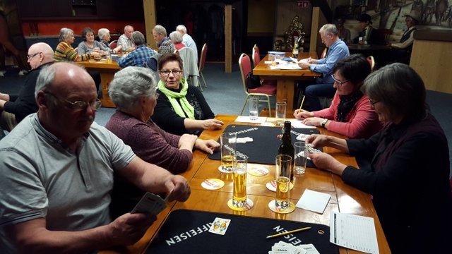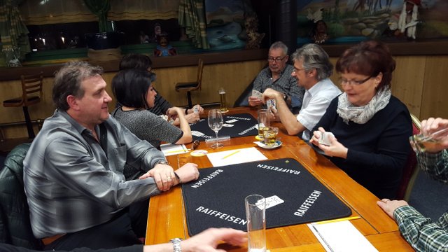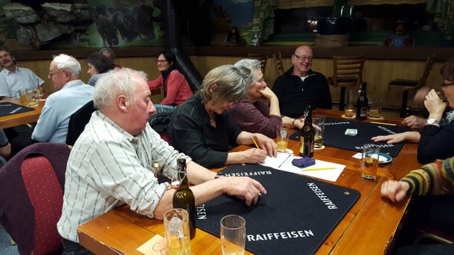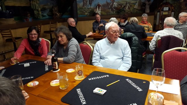 2016: Jassabend vom 15. März Einwohnerverein Werdenberg suchte seinen Jassmeister! Spielfreudige Mitglieder und Freunde des Vereins trafen sich im Landgasthof zur Ermittlung ihres Meisters 2016. Kurz nach 19 Uhr ging es dann auch schon los, und die ersten Karten wurden verteilt. Es dauerte auch gar nicht lange und schon hörte man von den sechs Spieltischen her die ersten Voten: „Hätte ich, sollte ich, könnte ich“ und und und, so kam es daher. So gegen halb elf Uhr, wurden dann die letzten Trümpfe gespielt und die Rangierungen standen somit auch fest. Die ersten fünf in der Tabelle durften einen Preis entgegen nehmen und ebenfalls derjenige Spieler, welcher am wenigsten Erfolg hatte durfte sich noch über einen Trostpreis freuen. (Bild mit den siegreichen SpielerInnen) Rundum, darf man sagen, war es sicherlich ein gelungener Abend wobei die Teilnehmer und Teilnehmerinnen sichtlich Ihren Spass hatten, was auch der guten Organisation und Durchführung durch die Vereinsmitglieder H.&H.Frick zu verdanken ist. weitere Bilder: |