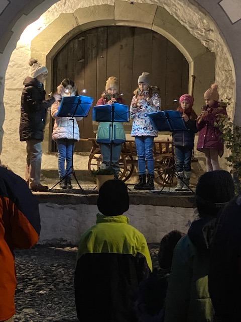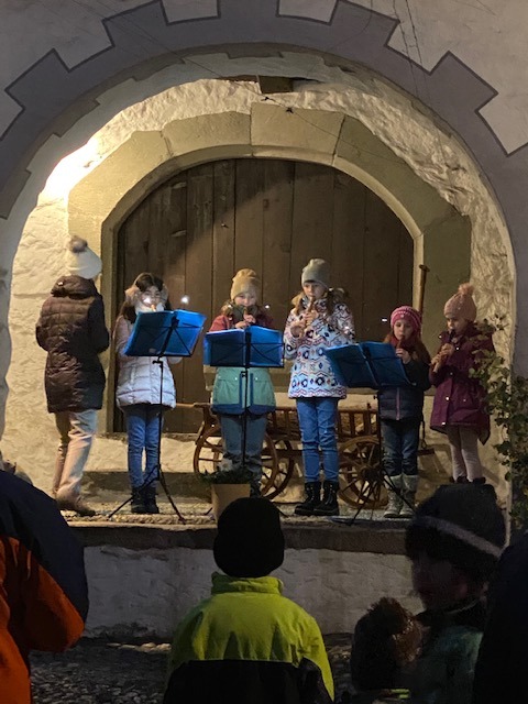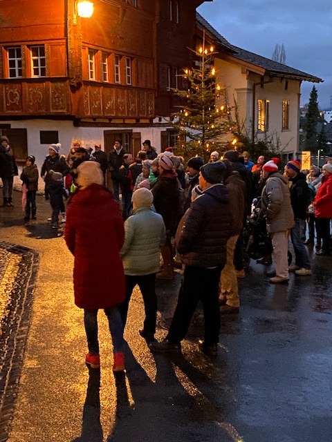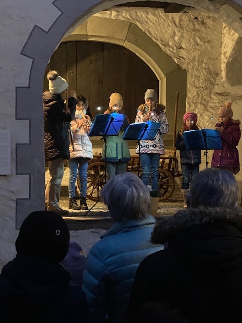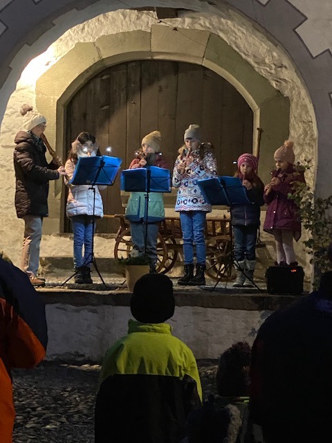 Gemeinsam mit den Little Flauteenies wurde, bevor es dann zum offerierten Apero ging, das Weihnachtslied « O Tannenbaum » gesungen. Punsch, Glühwein und Adventsgebäck warteten schon bereits auf die ca. 70 Anwesenden Gäste. Mit wünschen für ein paar ruhige Tage in all der Hektik sowie Zeit für die Lieben und für sich selbst und vorallem mit dem Wunsch für ALLE zum GESUND bleiben fand der Anlass dann seinen Ausklang.