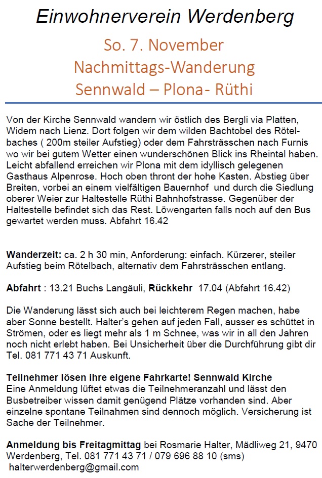 27. November 2021: Herbstwanderung Sennwald-Plona-Rüthi