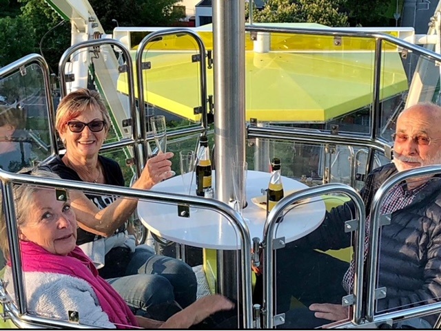 Bei herrlichen Sonnenschein und milden Temperaturen fanden sich an diesem Freitaggabend fast 50 Mitglieder zu diesem Anlass ein und man hörte von allen Seiten her nur positives, und wie schön es sei, sich wieder einmal zu treffen. Ein Dankeschön gehört auch dem Betreiber des Riesenrades, welcher uns doch die eine oder andere Runde mehr drehen liess. Gut versorgt mit Wein, Cüpli, Mineral oder sonst etwas und „Knabbergebäck“ verging die Zeit wie im Fluge.